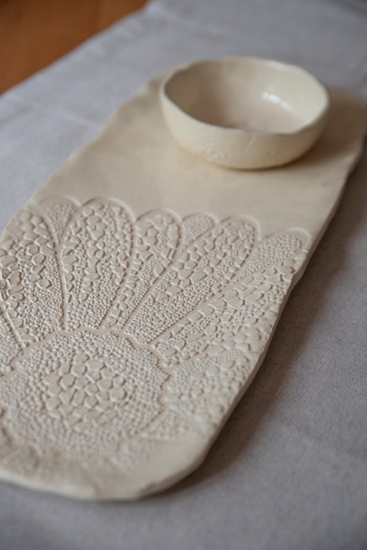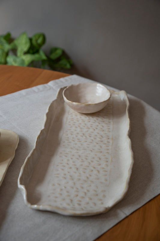 Bandeja cerámica gres "Marfil Loto"