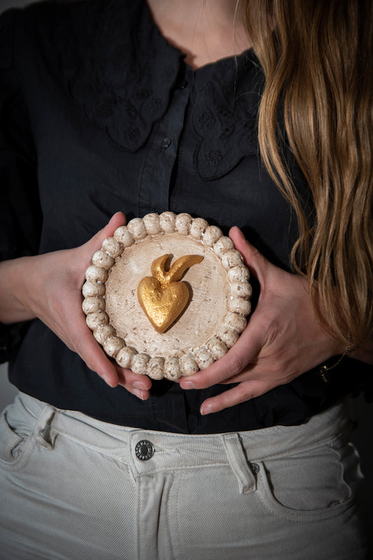 Adorno de corazón Calma Rústica Dorado MedianoProveedor:De CorazónPrecio habitual $12.990 CLPPrecio habitualPrecio unitario / por-