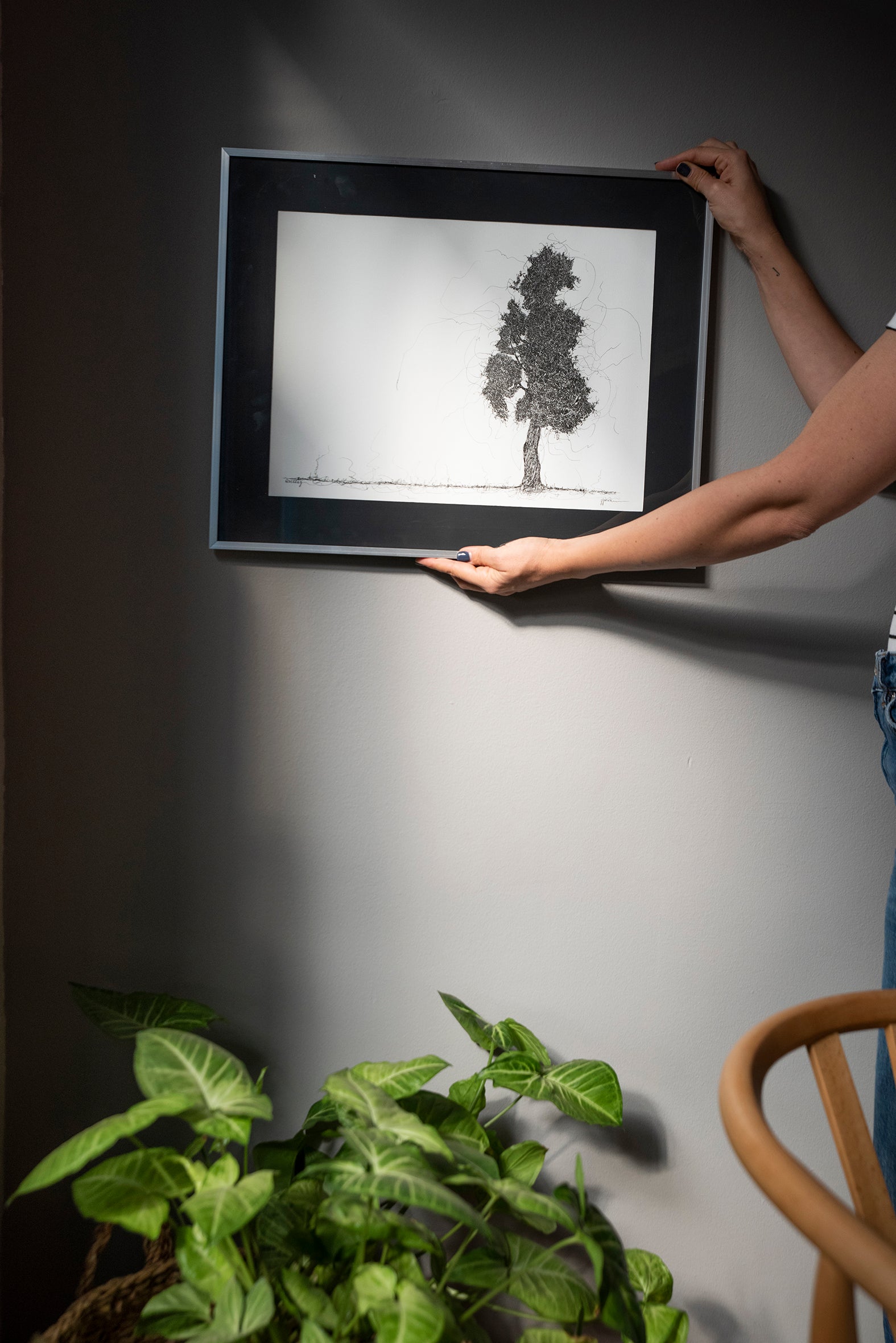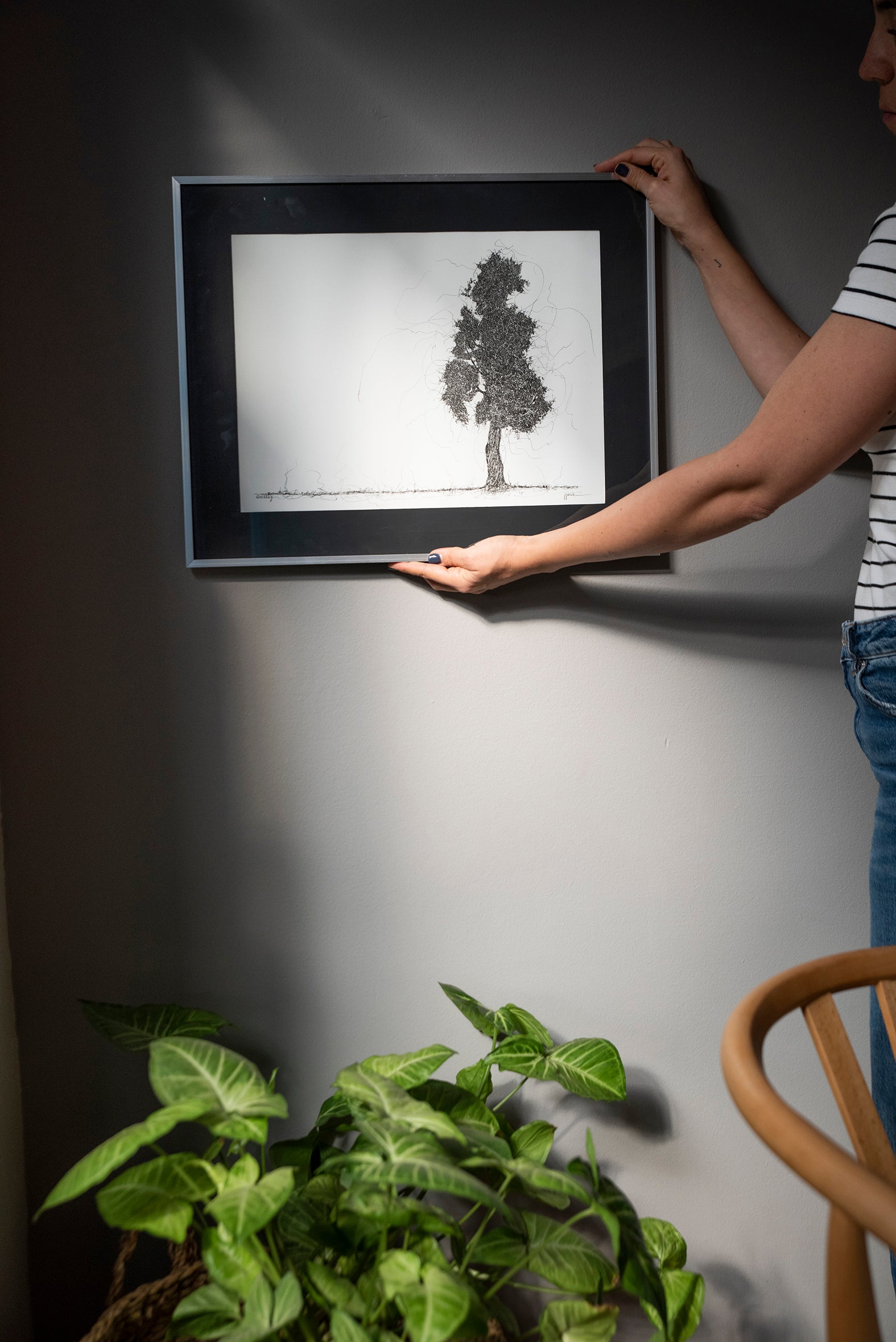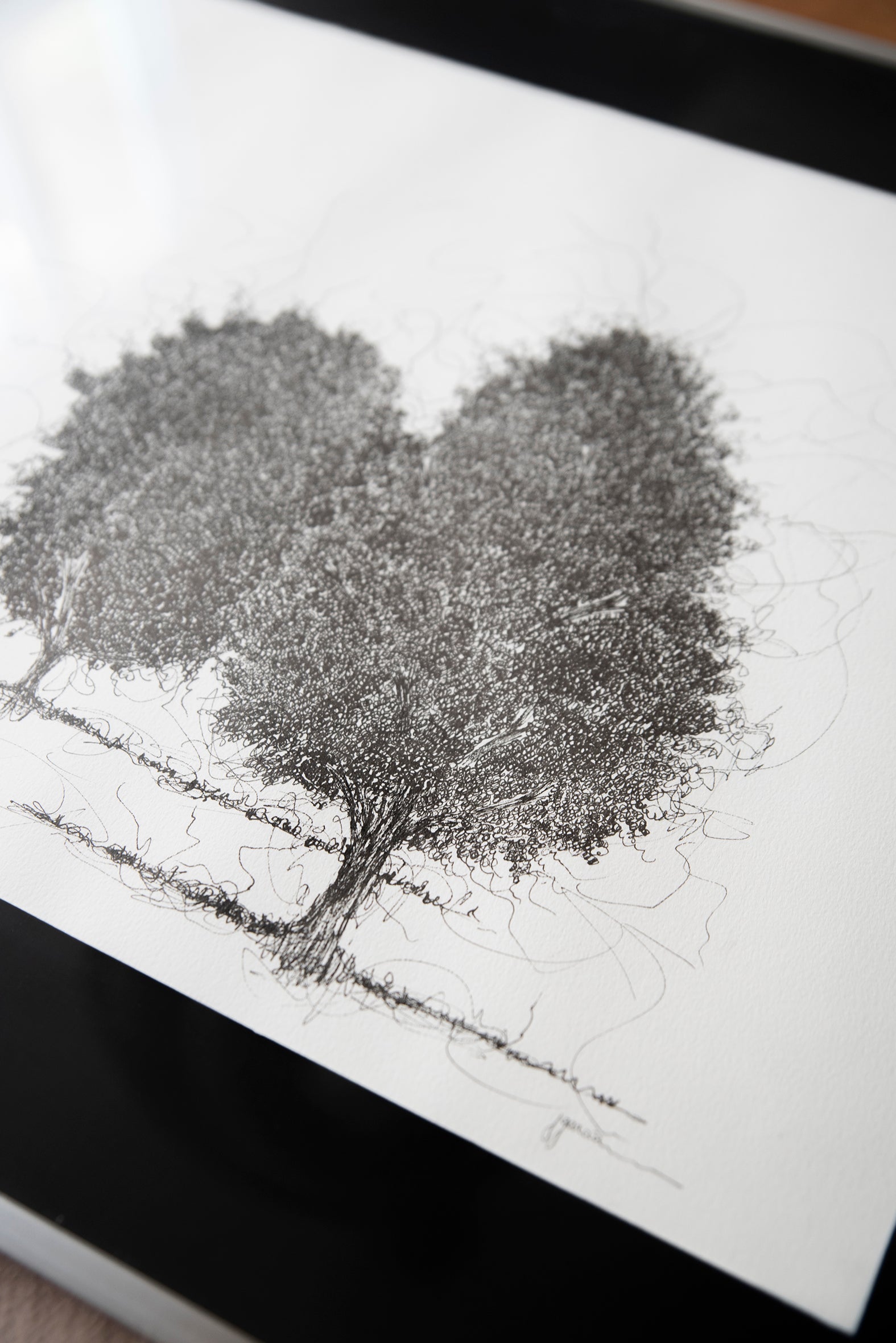 Cuadros dibujado a tinta con paspastú negro. Incluye enmarcado.