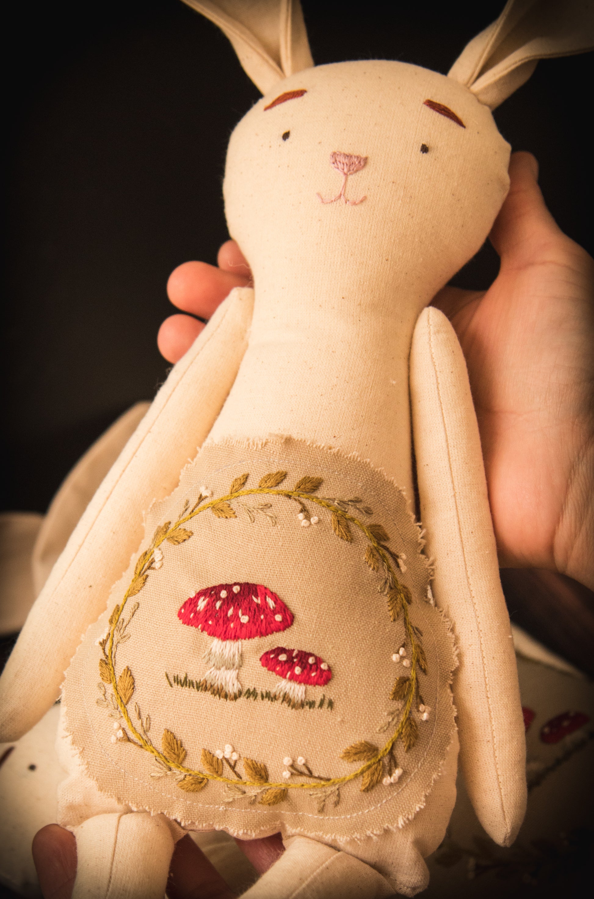 Conejito de algodón con hongo bordado