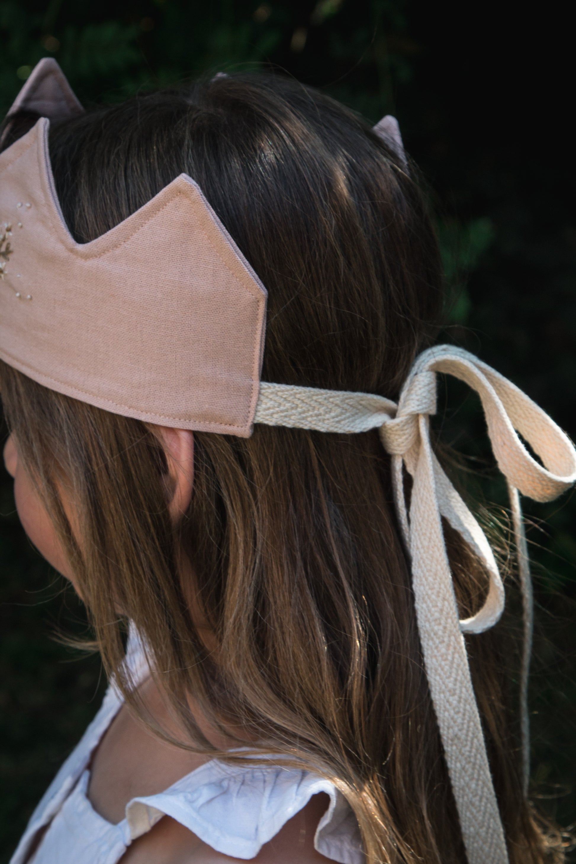 Coronita de cumpleaños ajustable con cinta. Hilo de algodón y confeccionada a mano.