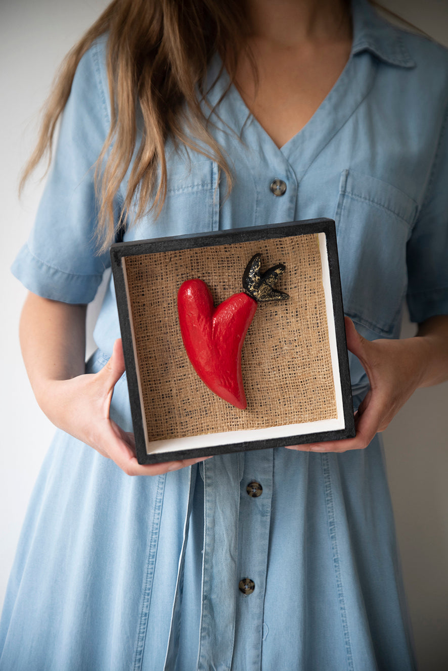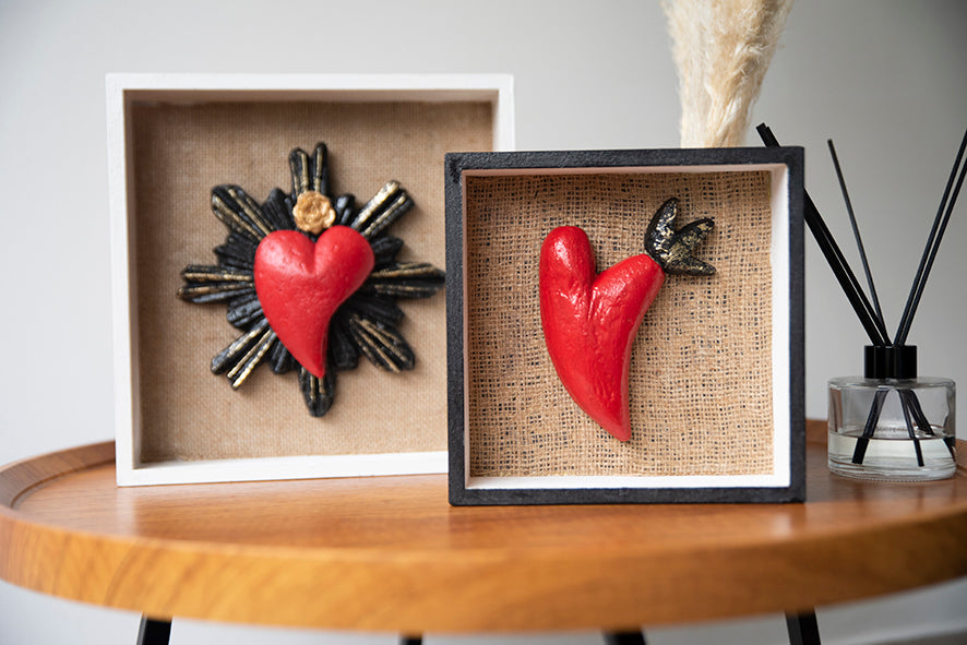 Cuadro con Corazón de Papel Maché – Arte y Color para tu Espacio