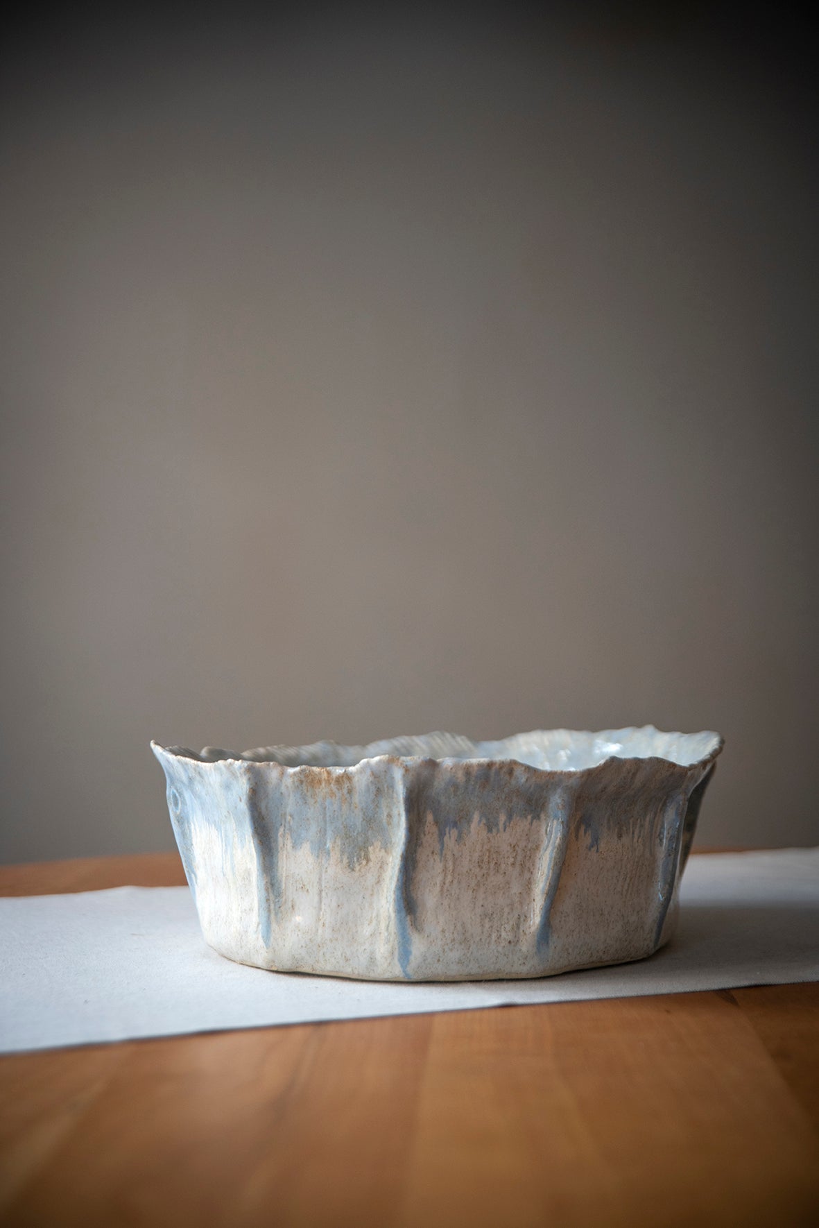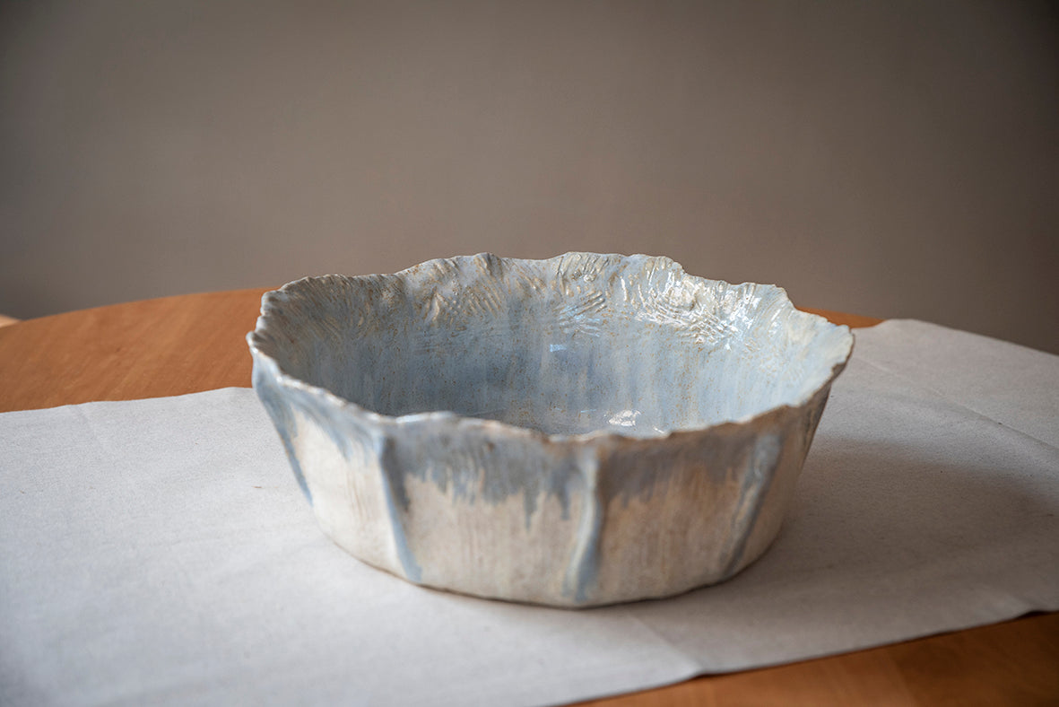 Cerámica de gres 100% hecha a mano, en un proceso artesanal en el que cada pieza es cuidadosamente modelada y elaborada por la artista. Cada pieza posee acabados distintos lo que le da la cualidad de ser única.