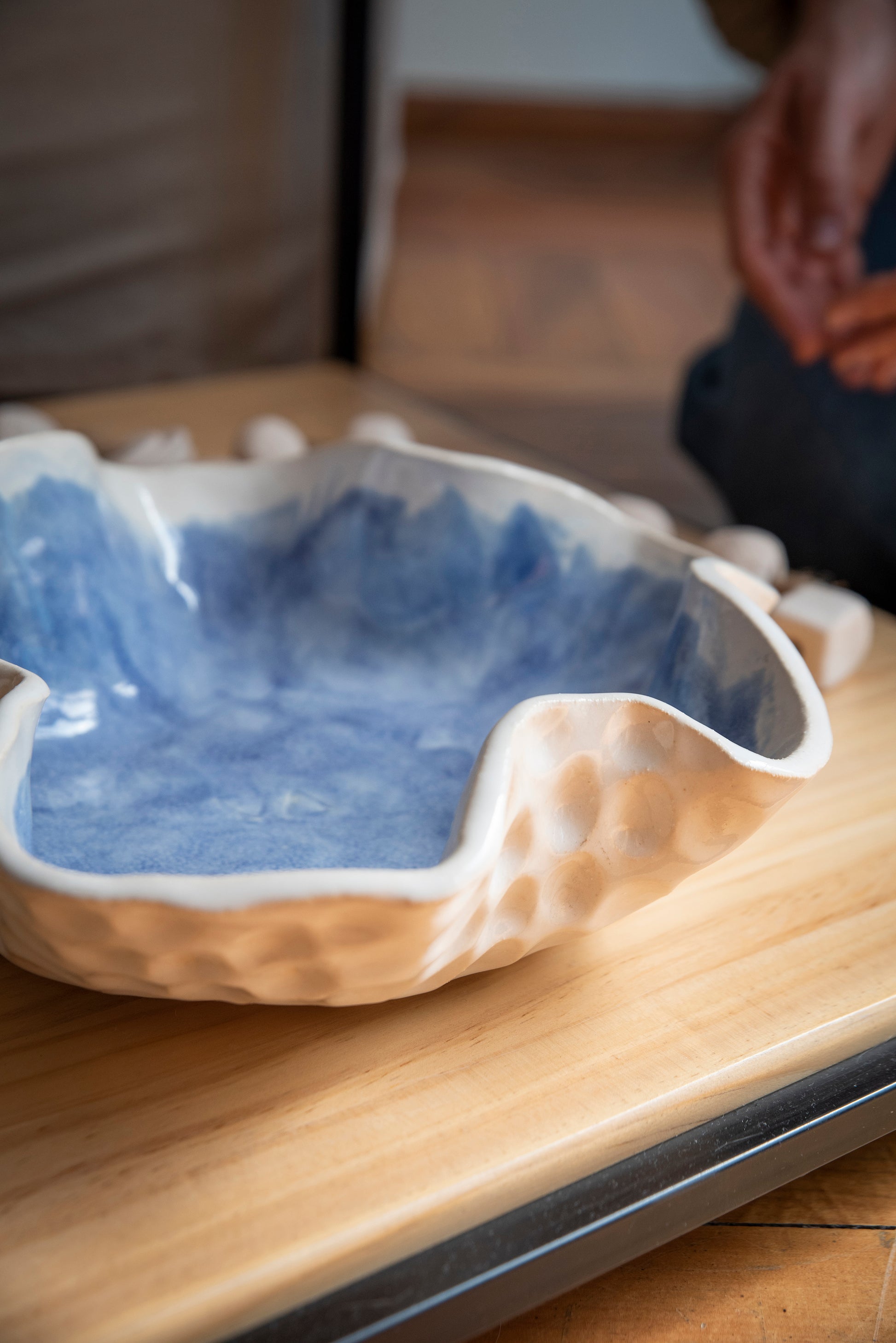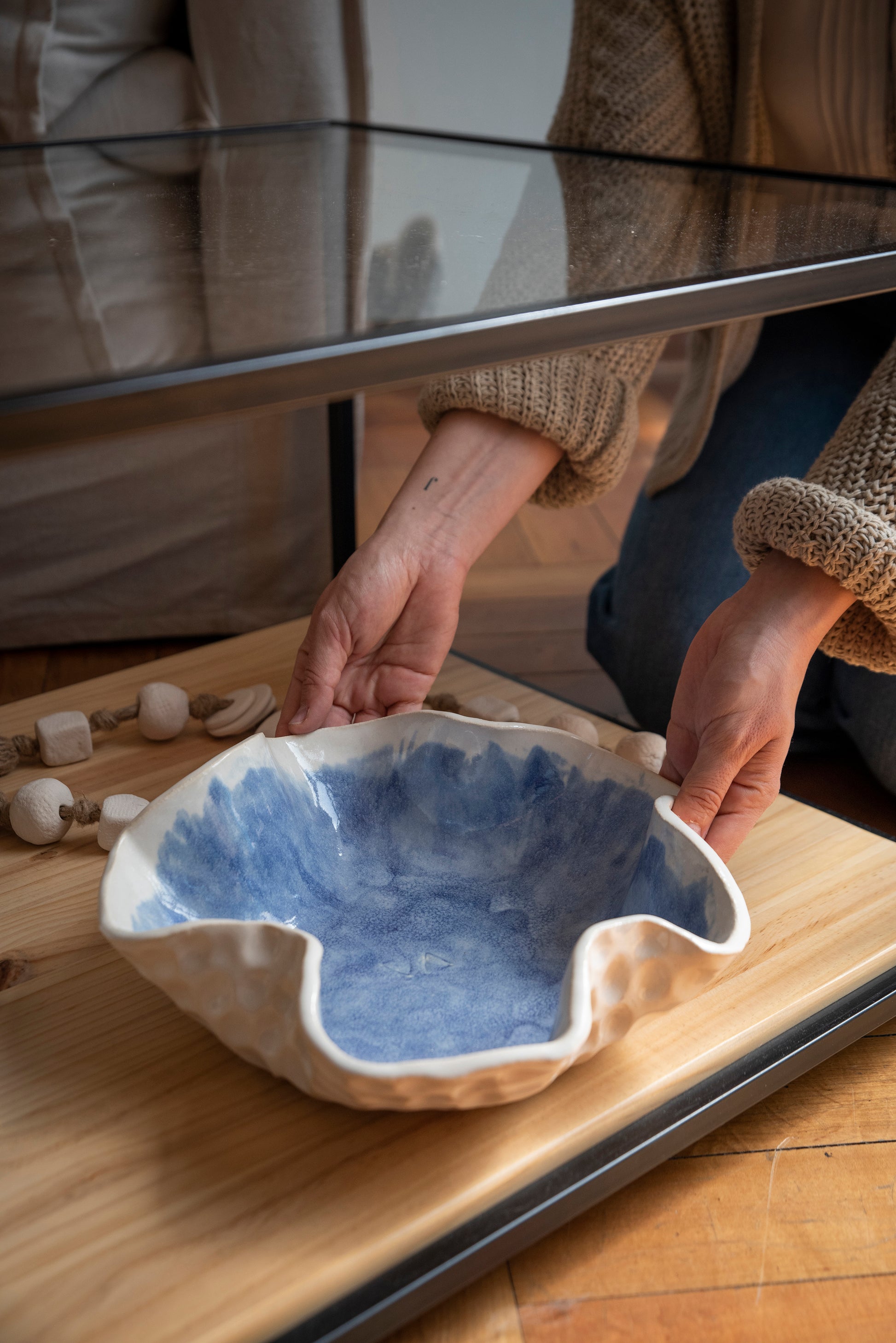 Centro de mesa cerámica gres "Amanecer en azul"