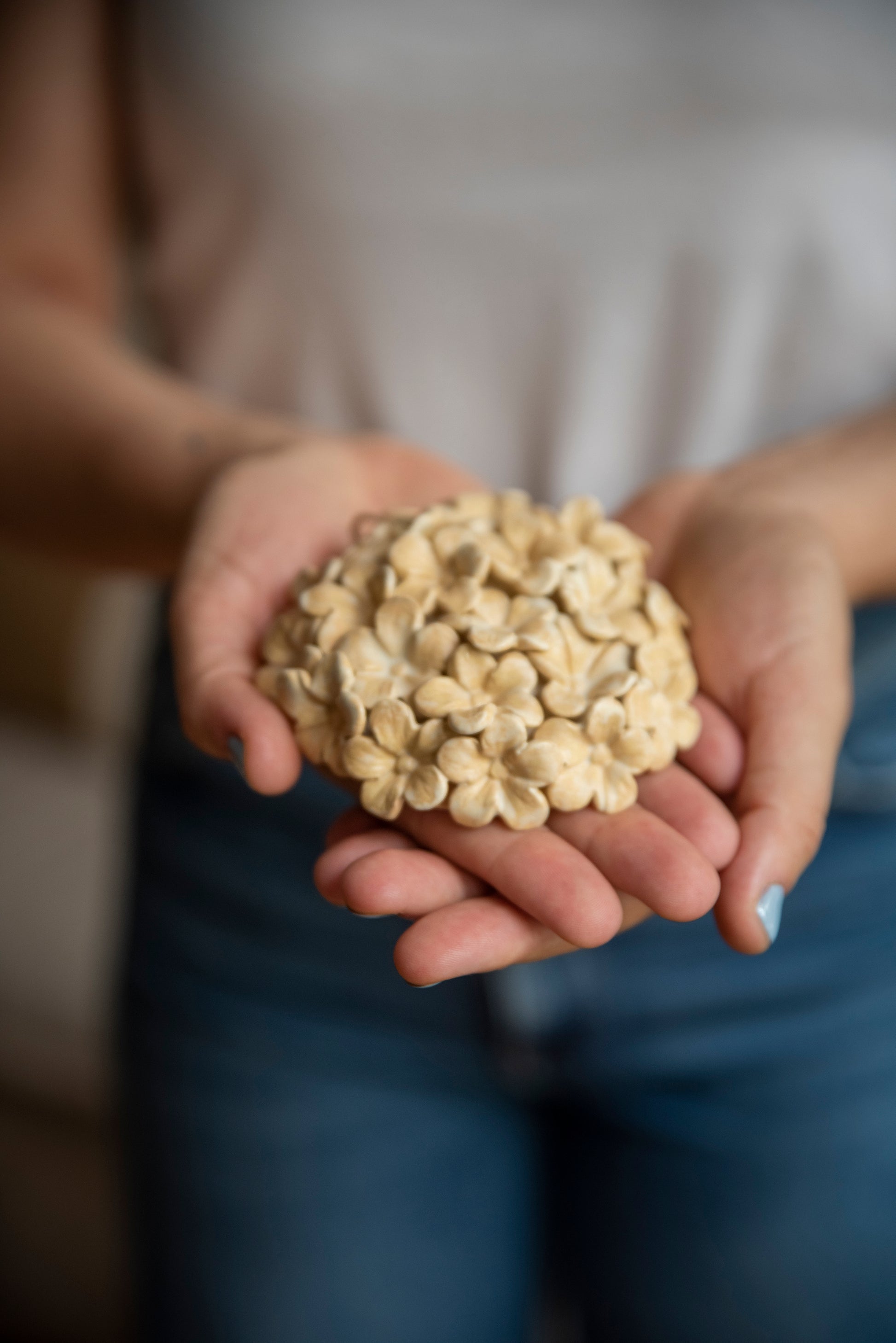 Hortensias hechas a mano en cerámica gres.