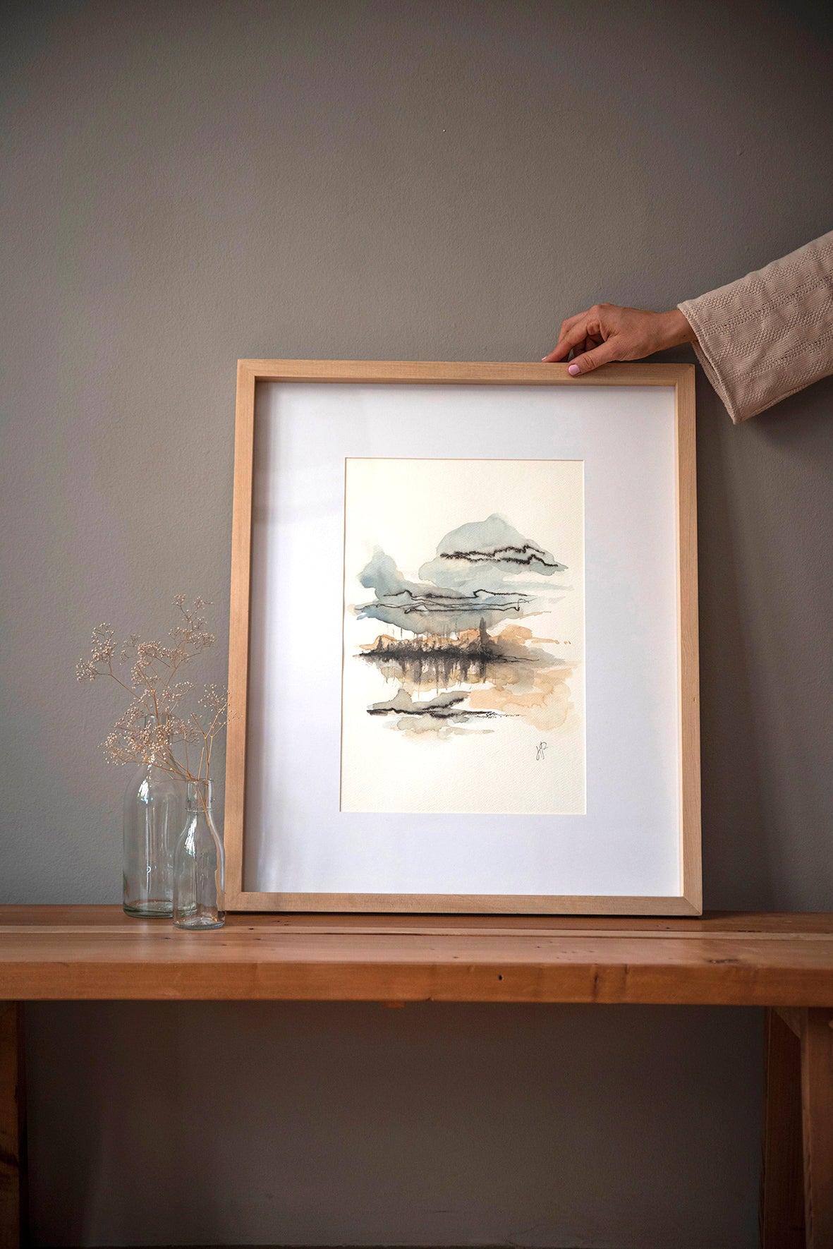 Obra "El Lago" pintada a mano en acuarela por Jacinta Rodillo.