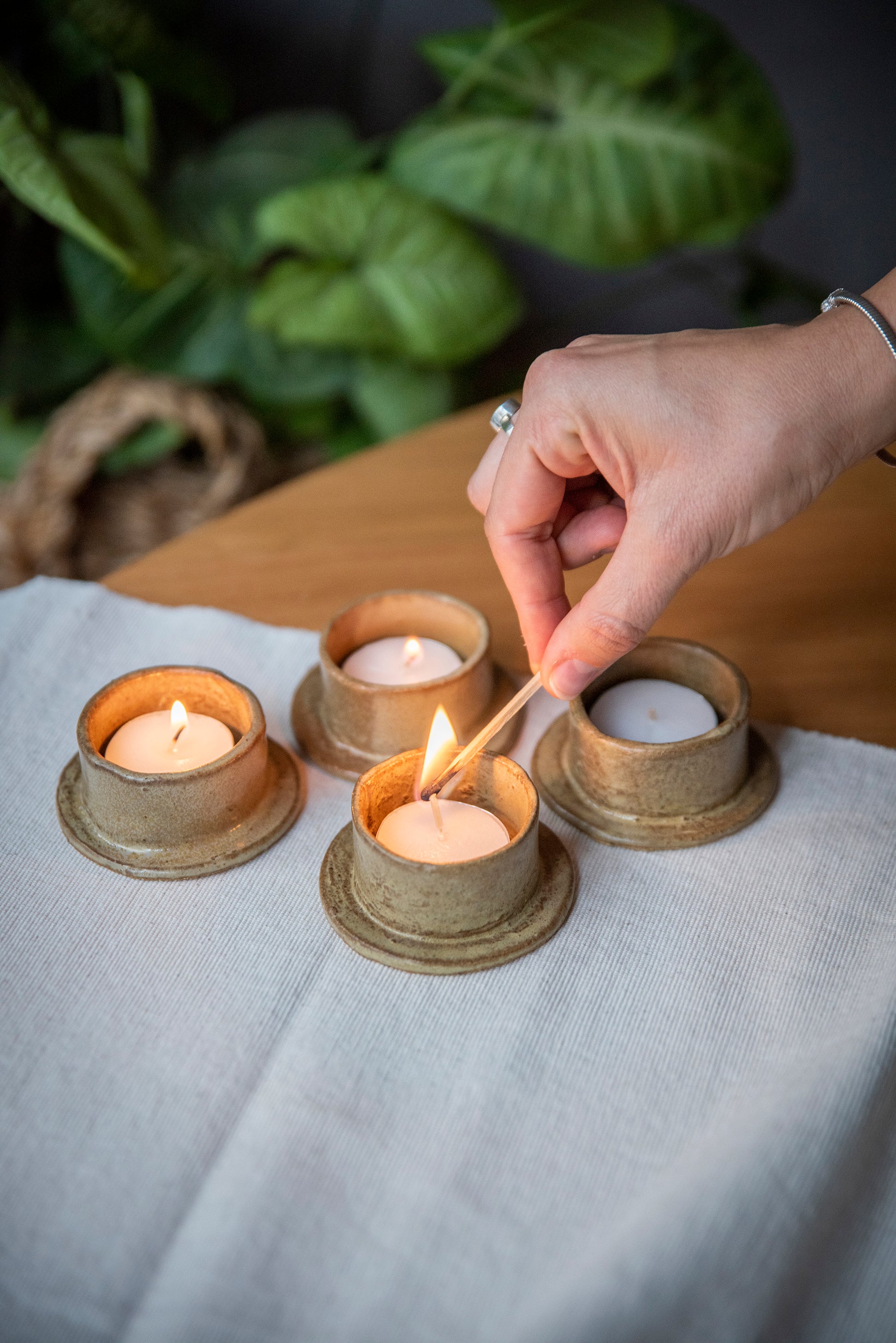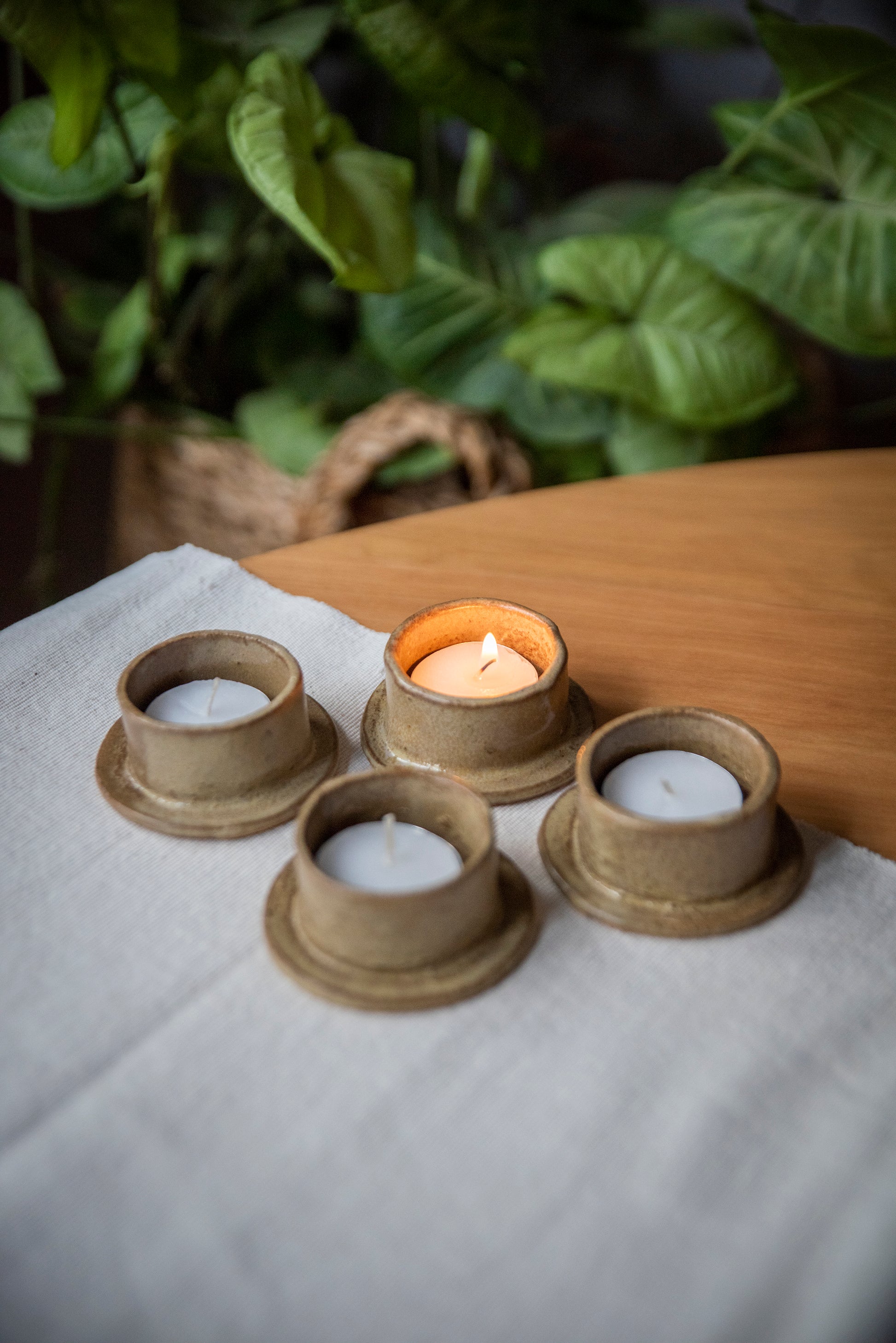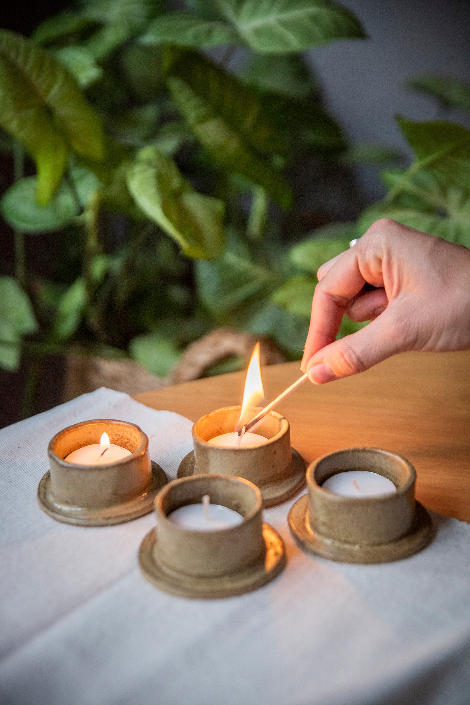 Pack 4 portavelas para mesa. Hechos a mano en cerámica gres.