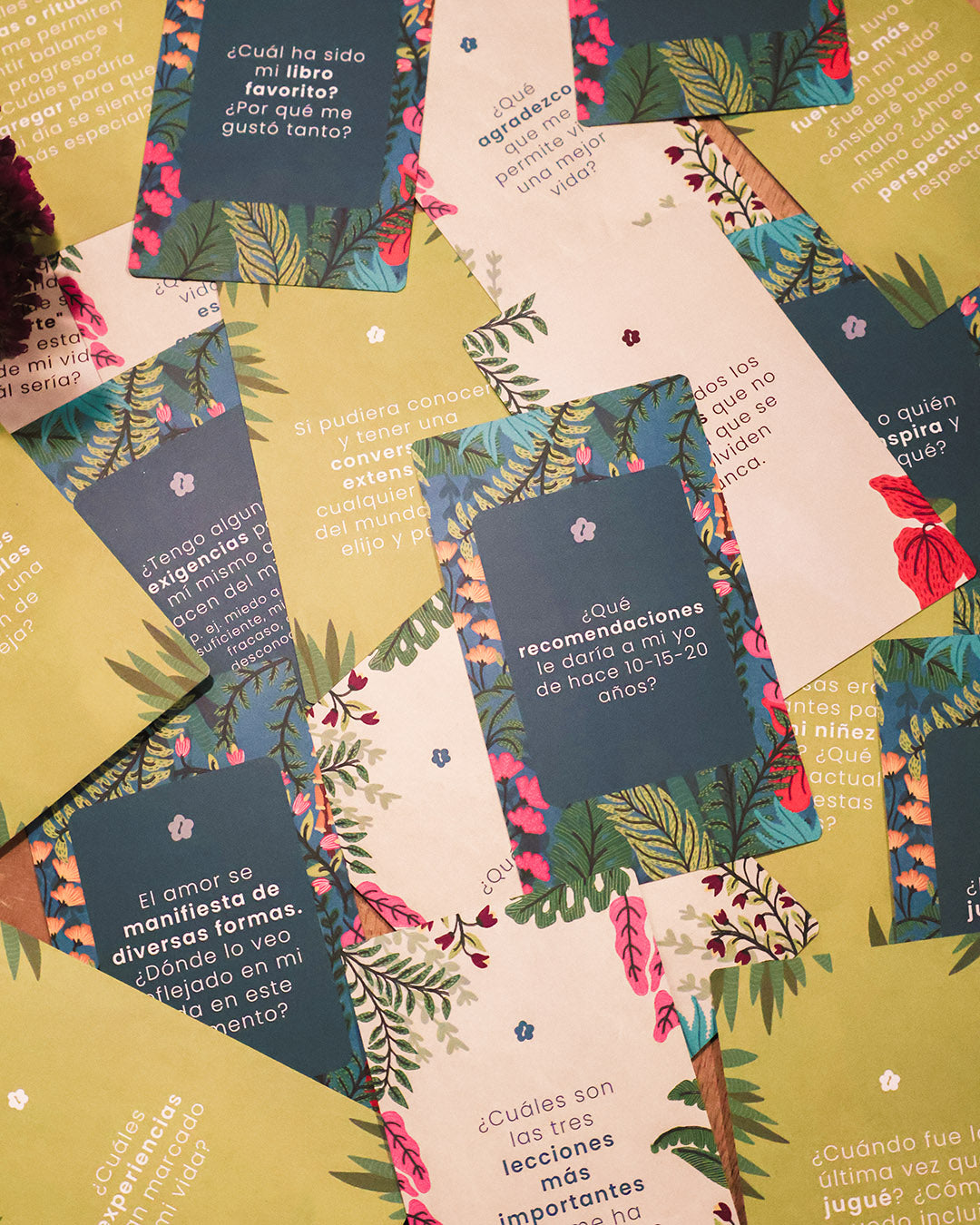 Un mazo de tarjetas pensado para abrir espacios de reflexión y autoconocimiento. Cada tarjeta propone frases y preguntas que invitan a detenerse, explorar ideas y emociones, y pueden usarse de manera individual o compartirse con familia, amigos o pareja, convirtiendo cada momento en un pequeño ritual de conexión y bienestar.