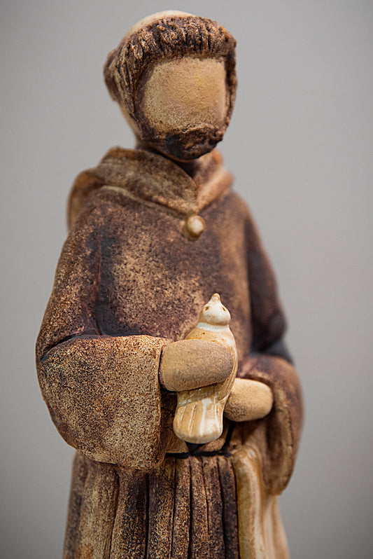 Pesebre de cerámica María flores rosa y Jose túnica verde